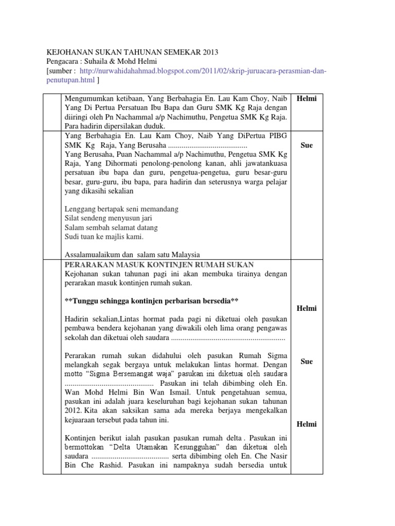 Teks Pengacara Majlis Sempena Kejohanan Sukan Tahunan 2017 Pdf